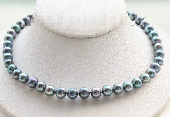 FREE shipping>>>> luster 17" 9-10mm natural round peacock black freshwater pearls necklace