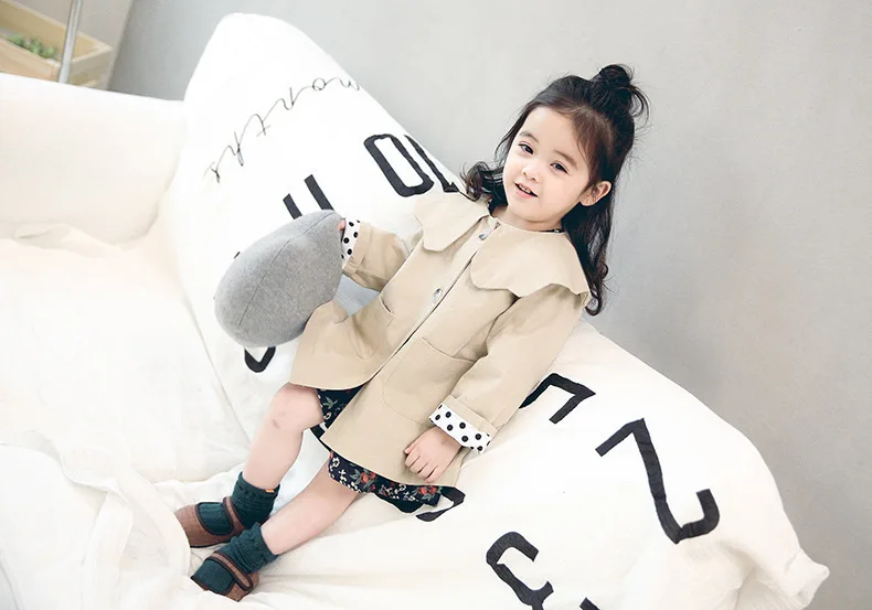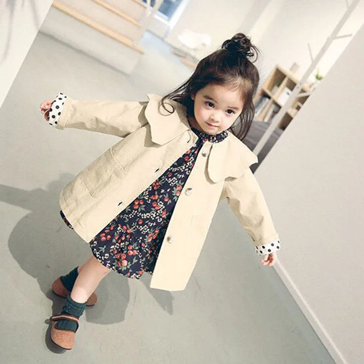 BEST Autumn GIRL'S Coat Children Mid-length Petal Collar Trench Coat Classic Fashion CHILDREN'S Jacket