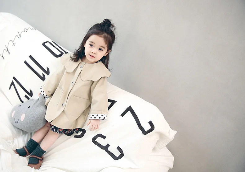 Autumn GIRL'S Coat Children Mid-length Petal Collar Trench Coat Classic Fashion CHILDREN'S Jacket