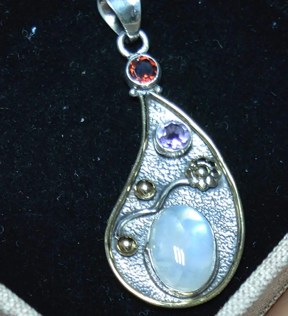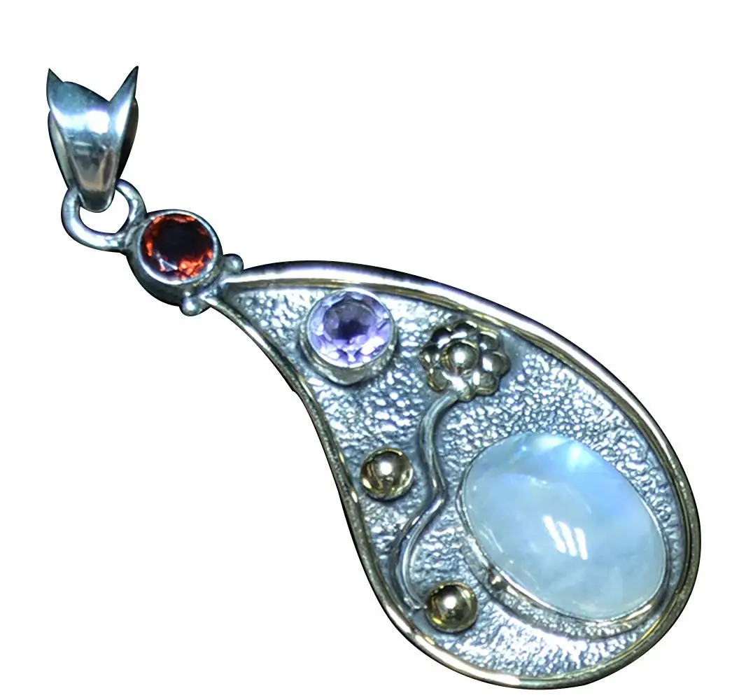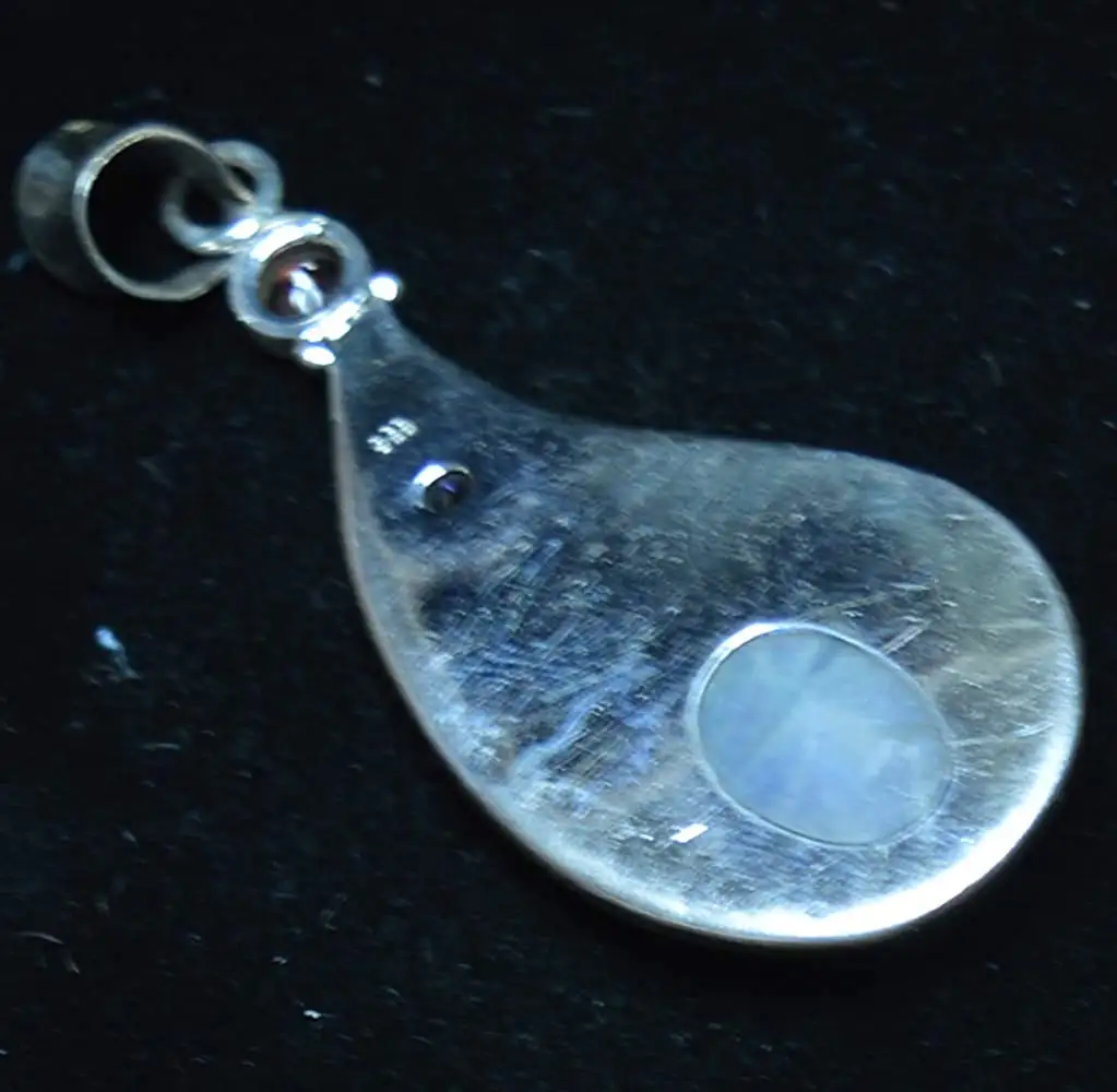 Genuine Blue Fire Moonstone + Amethyst Pendant 925 Sterling Silver54.5 mm 2SP0608