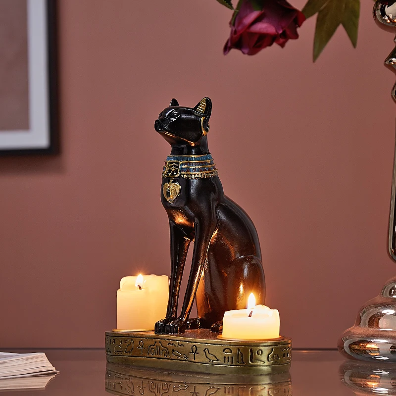 HIGH QUALITY Classical Egyptian Cat Resin Candlestick Decoration Restaurant Bar Wall Cabinet Desktop Home Decor