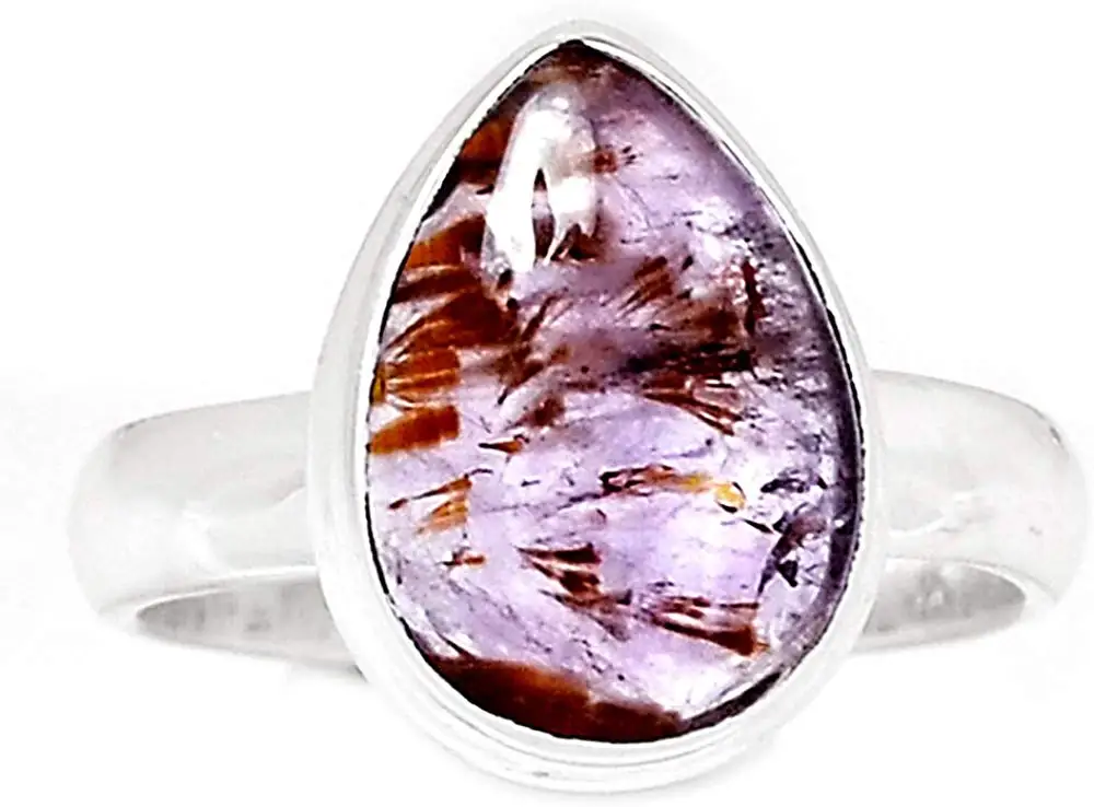 Genuine Super 7 / Cacoxenite Ring 925 Sterling Silver USA Size : 7.75 AR4213