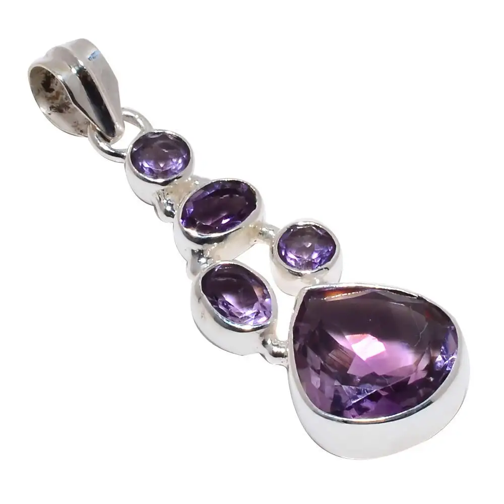 BEST QUALITY Nature Amethyst Pendant 925 Sterling Silver 47.7 mm 2SP0036