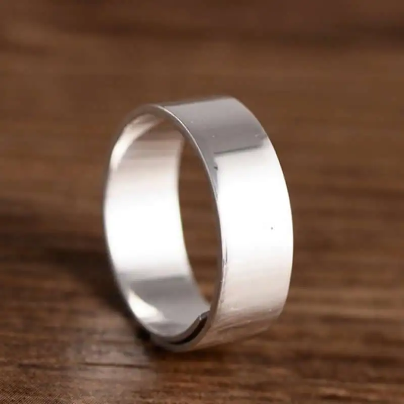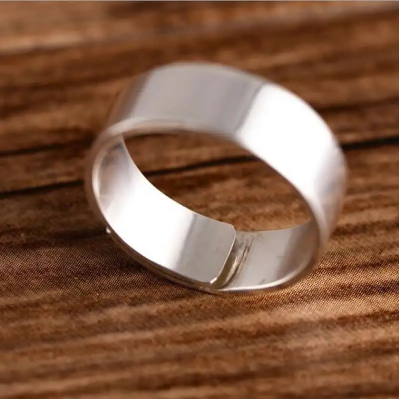Solid S999 Silver Ring Women Smooth Ring Band Stamp S999 Can adjustable