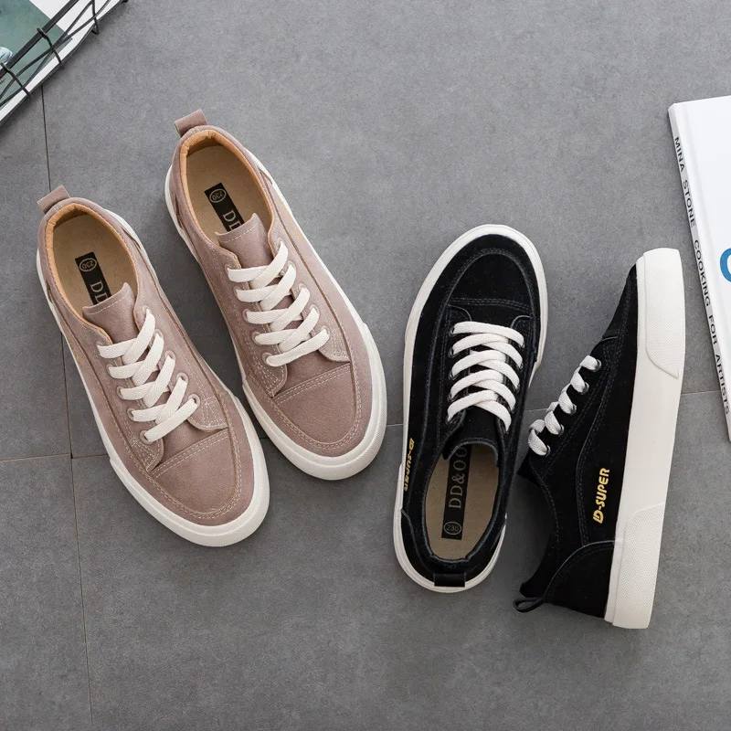 BEST QUALITY Woman Shoes New Fashion Casual Suede Leather Shoes Women Casual Breathable Soild Color Classic Blac