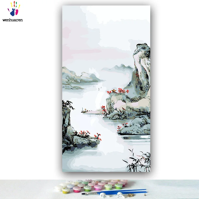 ORIGINAL DIY colorings pictures by numbers with colors Landscape scenery Seclusion picture drawing painting