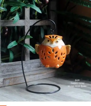 Best Quality Lovely American vintage owl hollow-out ceramic candlestick garden garden lantern decorations culptu
