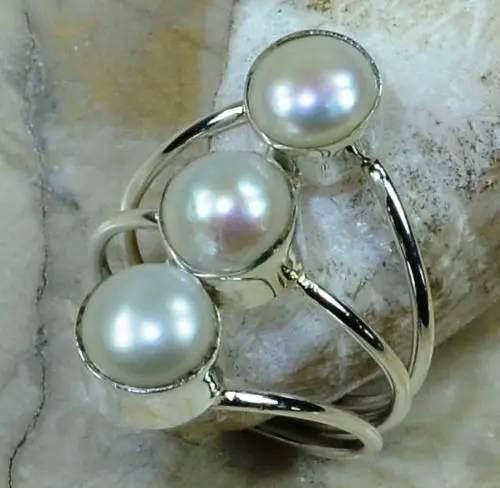 BEST QUALITY Hand makePearl Ring 100% 925 Sterling Silver Jewelry 4.1G Size: 7.5 Gift BOX