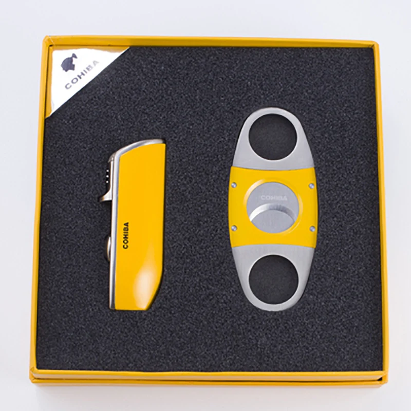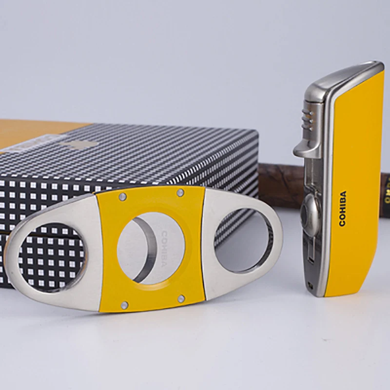 Cohiba cigar lighter and cutter set Classic yellow Travel Business cigar cutters gift