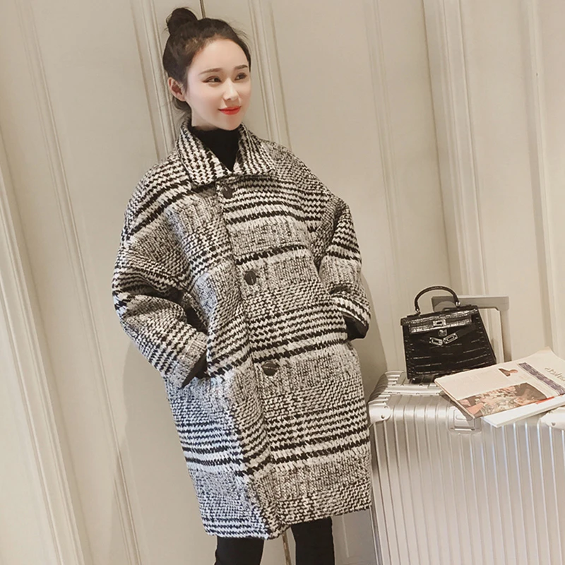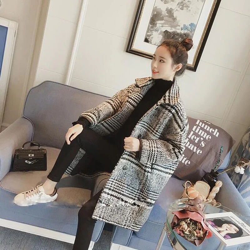 Best Quality Woolen Coat Women Winter Classic Plaid Mid-long Outwear Womens Pockets Chic Loose 2XL Harajuku Kore