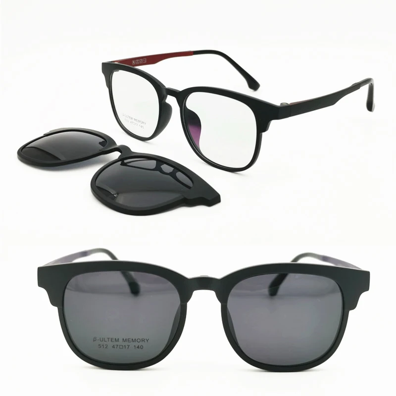 HOT Sale classic ULTEM wayframe prescription glasses with detachable clip on polarized sunglasses lenses han